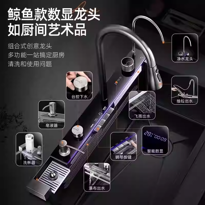 • 5.0 Thickened Feiyu Waterfall Sink 304 Stainless Steel Handmade Large Single Bowl Household Kitchen Countertop Double Basin